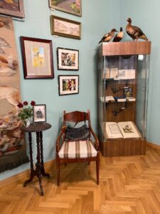 Вы сможете полюбоваться искусно выполненными изделиями мастера-таксидермиста Е. М. Ноздрина: гордым фазаном, осторожным сурком, милым зайцем-листопадником…