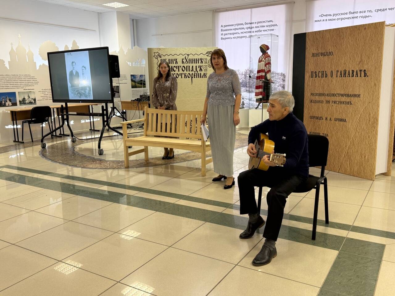 В Елецком государственном университете им. И.А. Бунина орловчане представили литературно-музыкальную композицию «Посылаю тебе мою душу». После приветственного слова директора Орловского объединенного государственного литературного музея И. С. Тургенева В. В. Ефремовой сотрудники музея Аркатова Е. Г. и Корнеева И. В. рассказали о женщинах в жизни великого писателя и о самых ярких его произведениях о любви. Инсценировку бунинских рассказов «Легкое дыхание» и «Солнечный удар» зрители увидели в исполнении Чернышевой А. Н., Беленькой О. Н., Коленкина А. К. Композицию украсили русские романсы, которые очень душевно спел под гитару Рахим Рахманов.