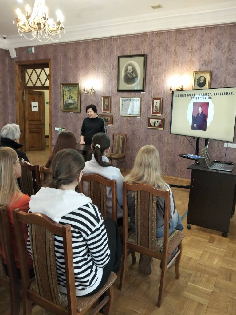 10 февраля в Музее писателей-орловцев прошла лекция В. В. Мутасовой «Жуковский – наставник, педагог, просветитель». Студенты первого курса ФСПО ОГУ им. И. С. Тургенева (преподаватель Екатерина Сергеевна) узнали о страницах жизни поэта, которые были связаны с его педагогической и воспитательной деятельностью.