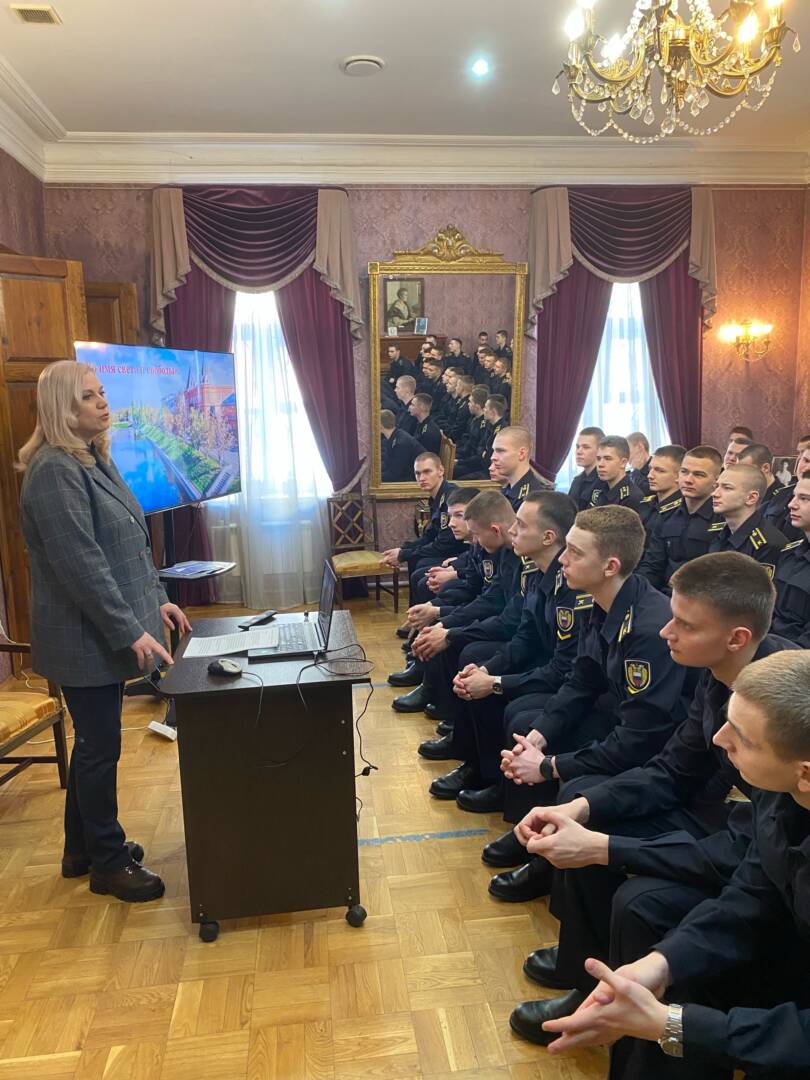 Ирина Владимировна рассказала о прекрасном поэте-орловце Евгении Аграновиче, поэте-песеннике Алексее Фатьянове, чья судьба также связана с Орлом; познакомила курсантов с некоторыми поэтическими произведениями на тему войны нашей землячки Елены Благининой.