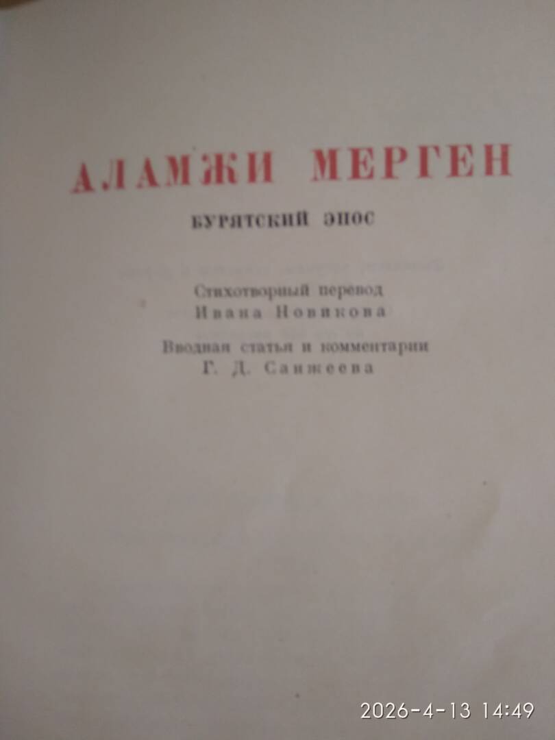 Бурятский эпос «Аламжи Мерген» в переводе И.А.Новикова. (Издания народов России в редком фонде музея И.С.Тургенева).