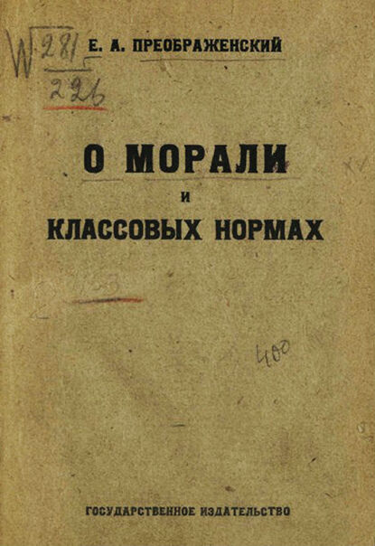 Евгений Преображенский в будущем стал автором нескольких работ по экономической политике: «Перспективы новой экономической политики», «Русский рубль за время войны и революции», «Перспективы новой экономической политики». Особняком стоит работа Преображенского «О морали и классовых нормах», опубликованная в 1923 году. В ней революционер описал смысл классовой морали, как он его понимал: «Мораль в классовом обществе следует за классовым интересом, который она заставляет щеголять в туманном, мифологическом одеянии, то есть просто делается классовой. Каждый сложившийся и имеющий определенные интересы класс или же заново вырабатывает подходящую для себя мораль, или же приспособляет к своим нуждам старую, внося в нее поправки, расширяя или суживая ее требования, толкуя в своих интересах те или иные ее нужды».