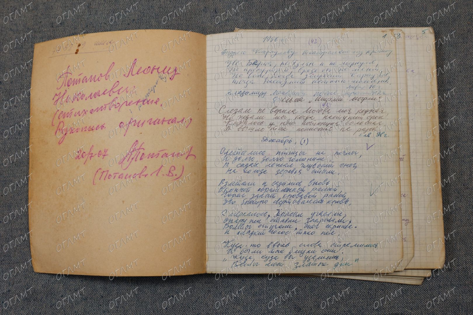 Рукописи со стихами, принадлежавшие орловскому художнику Потапову Леониду