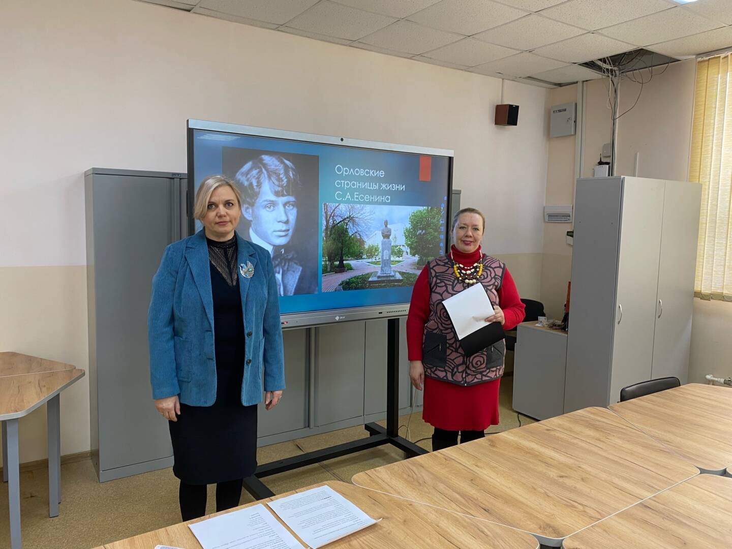 Научные сотрудники Музея писателей-орловцев Т.В. Абинякина и И.В. Самарина представили 18 марта учащимся Орловского автодорожного техникума программу «Орловские страницы жизни Сергея Есенина».