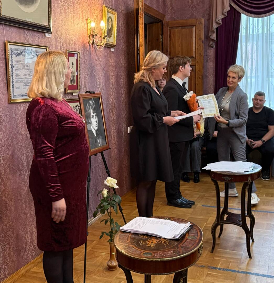 Минуты настоящего наслаждения доставили зрителям певица Кристина Басюк и концертмейстер Диана Золотарева. В исполнении Кристины прозвучали такие известные романсы на стихи поэта, как «Не жалею, не зову, не плачу…», «Отговорила роща золотая», «О, родина, счастливый и неисходный час!»