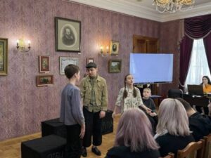 В центре внимания встречи оказался наш земляк, современный писатель, участник Специальной военной операции Алексей Алексеевич Шорохов. Именно ему принадлежат строки «Мир должен быть только после Победы, с фашистами договориться нельзя». Именно Орёл — «город с литературными традициями» является малой родиной Алексея Шорохова. Имя его представлено в музее писателей-орловцев: «Воин-поэт» — так называется бюст, экспонирующийся в одном из залов музея. А за двумя этими короткими словами таится интересный жизненный путь писателя-участника СВО, о котором в ходе мероприятия рассказали сотрудники музея Юлия Тишина и Лариса Маричева.