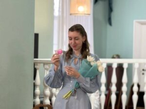 На этом же заседании состоялась встреча с радиожурналистом и писателем Ириной Мельниковой. Моим коллегам, да и мне самому доводилось бывать у Ирины в студии, и хочу сказать, что время пролетало незаметно. Это очень светлый и обаятельный человек, настоящий профессионал своего дела. Волевая и целеустремлённая, она выучила три языка: испанский, турецкий и английский! Но больше всего удивляет её писательский труд — Ирина автор двадцати романов! Она сама охарактеризовала свой жанр как «романтические истории для девочек и девушек всех возрастов». Согласитесь, сразу вспоминаются «Унесённые ветром», «Грозовой перевал», «Джен Эйр», «Королёк-птичка певчая» и множество других, написанных преимущественно для женской читательской аудитории. Должен заметить, что истории, придуманные Ириной Мельниковой, пронизаны искренней добротой и любовью по отношению к героям и их судьбам. Её книги — это настоящее лекарство от уныния, хандры и депрессии. После их прочтения хочется крепче хранить то, что имеешь, чтобы потом не плакать, потеряв… А сама Ирина призналась, что научилась внимательнее наблюдать за окружающим миром и ценить его красоту во время утренних прогулок со своим питомцем – корги по кличке Фунтик. Конечно, такой опыт помогает ей при создании своих уютных и солнечных книг. Кстати говоря, уже под занавес ведущая встречи Ирина Самарина предложила вынуть из корзинки записочки с цитатами из романов автора, которые стали для гостей добрым предсказанием на будущее. А ещё Ирина Мельникова — искушённый читатель. Она открыла для себя книжный мир в раннем детстве, когда мудрая мама каждый вечер читала ей перед сном. Уважаемые родители, читайте своим детям на сон грядущий!