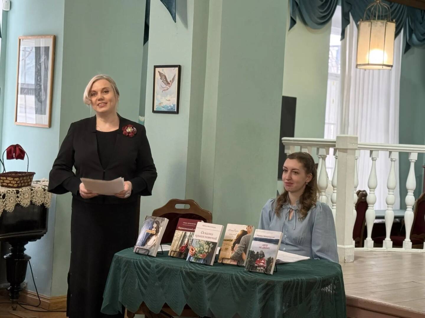 На этом же заседании состоялась встреча с радиожурналистом и писателем Ириной Мельниковой. Моим коллегам, да и мне самому доводилось бывать у Ирины в студии, и хочу сказать, что время пролетало незаметно. Это очень светлый и обаятельный человек, настоящий профессионал своего дела. Волевая и целеустремлённая, она выучила три языка: испанский, турецкий и английский! Но больше всего удивляет её писательский труд — Ирина автор двадцати романов! Она сама охарактеризовала свой жанр как «романтические истории для девочек и девушек всех возрастов». Согласитесь, сразу вспоминаются «Унесённые ветром», «Грозовой перевал», «Джен Эйр», «Королёк-птичка певчая» и множество других, написанных преимущественно для женской читательской аудитории. Должен заметить, что истории, придуманные Ириной Мельниковой, пронизаны искренней добротой и любовью по отношению к героям и их судьбам. Её книги — это настоящее лекарство от уныния, хандры и депрессии. После их прочтения хочется крепче хранить то, что имеешь, чтобы потом не плакать, потеряв… А сама Ирина призналась, что научилась внимательнее наблюдать за окружающим миром и ценить его красоту во время утренних прогулок со своим питомцем – корги по кличке Фунтик. Конечно, такой опыт помогает ей при создании своих уютных и солнечных книг. Кстати говоря, уже под занавес ведущая встречи Ирина Самарина предложила вынуть из корзинки записочки с цитатами из романов автора, которые стали для гостей добрым предсказанием на будущее. А ещё Ирина Мельникова — искушённый читатель. Она открыла для себя книжный мир в раннем детстве, когда мудрая мама каждый вечер читала ей перед сном. Уважаемые родители, читайте своим детям на сон грядущий!