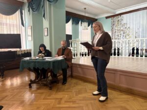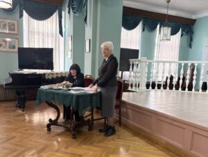 Лариса Викторовна Дмитрюхина, редактор Ежегодника и автор «Музейного калейдоскопа», с помощью телефонной связи обратилась с приветственным словом к Обществу. Лариса Викторовна поблагодарила наших замечательных авторов и отметила, что во время подготовки Ежегодника возникло множество трудностей и препятствий. Но их преодоление стоило того, чтобы Ежегодник увидел свет.