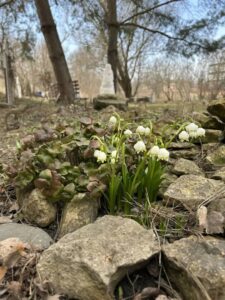 Наш Маменькин садик пережил без потерь очередную зиму, и скоро будет готов радовать и нас, и гостей музея. В этом мы убедились, выйдя в сад на первый в сезоне субботник. Очистили от хвои земляничные холмики, поразившись ещё раз тому, как быстро растут сосны; собрали в мусорные пакеты прошлогодние листья, перебрали весь садовый инвентарь. Уже проснулись крокусы, белоцветник, анютины глазки. Вот-вот заявит о себе легендарная разрыв-трава. Конечно, с нетерпением ждём возвращения пернатых обитателей сада. Очень приятно будет работать под их живительное пение и наблюдать, как один за другим принаряжаются наши питомцы. Что за чудо цветущий миндаль! А каков красавец-бересклет! И, конечно, не отвести глаз от многочисленных разноцветных тюльпанов!