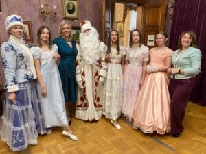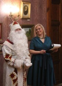 Все это осуществилось в Музее писателей-орловцев 24 декабря. Научные сотрудники музея Ирина Владимировна Самарина и Татьяна Владимировна Абинякина представили программу «Новый год из века в век». Зрители прикоснулись к истории балов и бального этикета России XIX века, полюбовались танцами прекрасных дам в пышных юбках и тугих корсетах. Потом перенеслись в советскую эпоху, где, конечно же, их приветствовал добрый Дед Мороз. Здесь зрителей ожидали приключения: им предстояло с помощью волшебных фонариков и чародейных слов снять заклятие с заколдованной девушки. Все закончилось хорошо: девушка, превращенная в лошадку, снова стала собой.