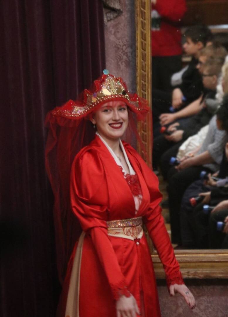 Звучали стихи нашей землячки Елены Благининой. А потом зрителей, Деда Мороза и ведущих закружил хоровод новогодних масок. И кого здесь только не было! Всех участников праздника обдало холодком, когда перед ними появилась сама Хозяйка медной горы, очень красивая, нарядная, но пугающая: а вдруг, она увлечет нас в свое царство и оставит у себя на долгие годы. Роскошный наряд, расшитый бисером и камнями, создала и продемонстрировала орловский модельер Илона Невзорова. Кстати, с этим костюмом Илона завоевала Гран-при EPICCON RUSSIA 2025, престижного фестиваля фантастики, кино, сериалов и компьютерных игр. Ее двухминутный номер поразил зрителей и членов жюри.