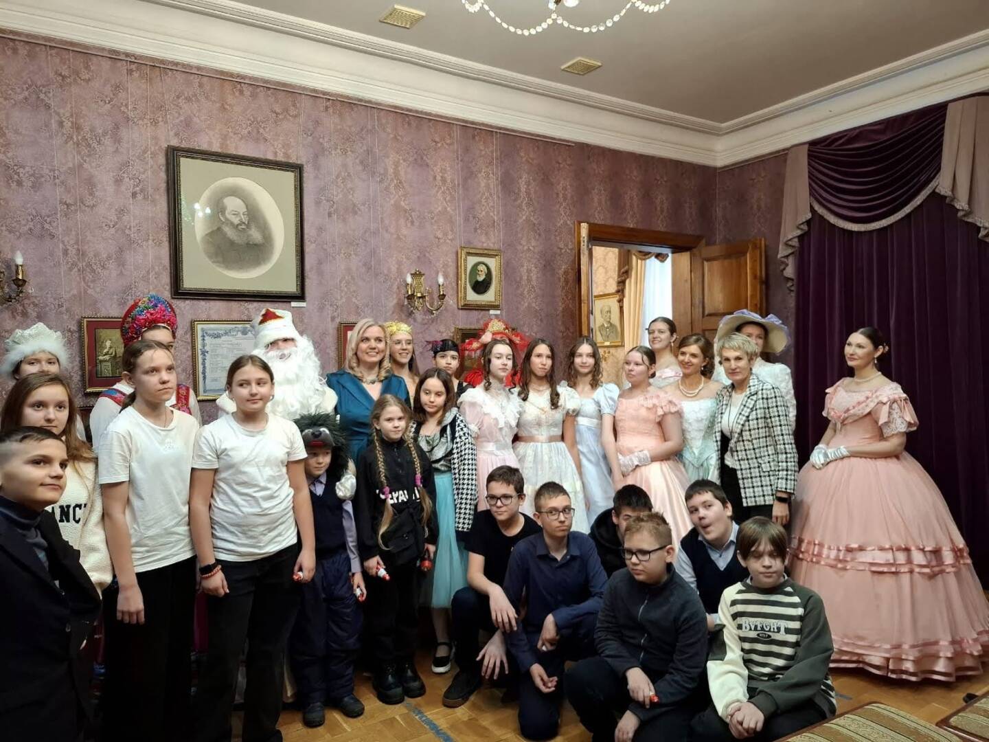 Все это осуществилось в Музее писателей-орловцев 24 декабря. Научные сотрудники музея Ирина Владимировна Самарина и Татьяна Владимировна Абинякина представили программу «Новый год из века в век». Зрители прикоснулись к истории балов и бального этикета России XIX века, полюбовались танцами прекрасных дам в пышных юбках и тугих корсетах. Потом перенеслись в советскую эпоху, где, конечно же, их приветствовал добрый Дед Мороз. Здесь зрителей ожидали приключения: им предстояло с помощью волшебных фонариков и чародейных слов снять заклятие с заколдованной девушки. Все закончилось хорошо: девушка, превращенная в лошадку, снова стала собой.