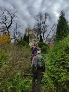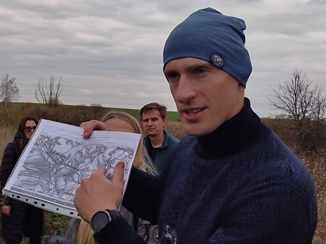 Формат мероприятия – поход «Памяти Т.Н. Грановского», позволил побродить не только в усадьбе, но и за ее пределами. Здесь бразды правления взял в свои руки лидер молодежного центра РГО Орловской области Денис Балагутин. Опытный турист благодаря военно-топографической карте Шуберта Орловской области провел участников через заросли, болотные топи, свежую пашню, березовую посадку в село Подзавалово. Здесь когда-то стоял Успенский храм, где был приход и семьи Грановских.