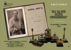 19 сентября в 16:00 2025 года в выставочном зале музея И.С. Тургенева состоится презентация выставки из фондовой коллекции музея И.С. Тургенева «Был рад быть Вашим современником». Выставка посвящена творческим и дружеским отношениям великого русского писателя Л.Н. Толстого с писателями-орловцами: И. С. Тургеневым, Н. С. Лесковым, А. А. Фетом, Л.Н. Андреевым, И. А. Буниным и И. А. Новиковым.
