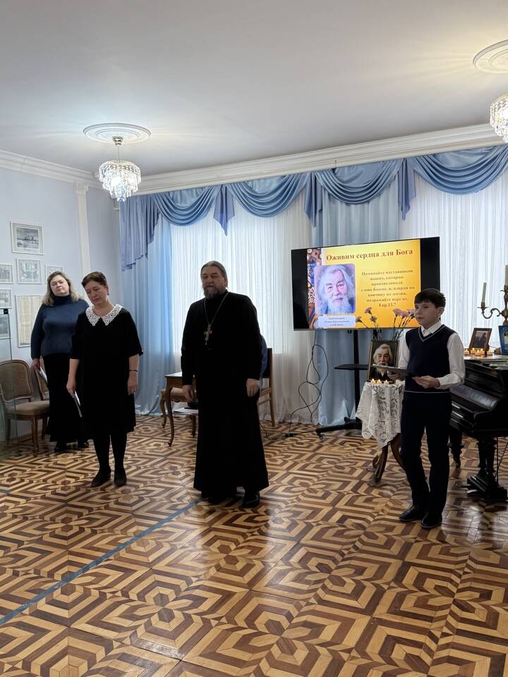 8 февраля в музее И. А. Бунина был осуществлён очень интересный музейно-просветительский проект «Оживим сердца для Бога». Началось мероприятие с общей молитвы, затем настоятель Николо-Песковского храма отец Сергий Артамохин сказал напутственное слово. Руководитель детской Воскресной школы при храме Назина Марина Леонидовна познакомила зрителей с основными эпизодами из жизни отца Иоанна (Крестьянкина), с его нравственными поучениями.
