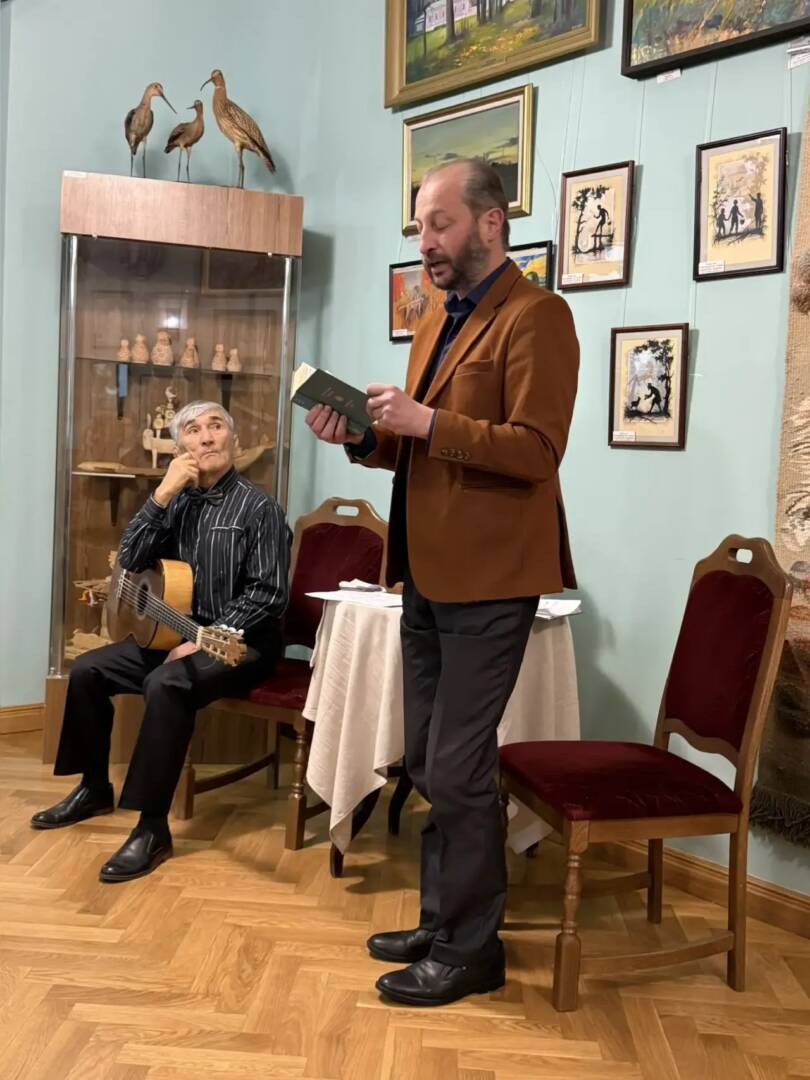 Кульминацией же вечера стало представление сотрудниками Музея писателей-орловцев Ларисой Михайловной Маричевой и Юлией Валерьевной Тишиной сценария, посвящённого ещё одному близкому нам юбиляру, – А. А. Фету (пятого декабря ему исполнилось 205 лет). Проникновенно прозвучал их рассказ, перемежаемый декламацией произведений знаменитого поэта и романсами на его стихи в давно ставшем традиционном исполнении нашего давнего друга Рахима Рахманова. Ядром этого сценария стала загадка личности Фета – в частности отмеченное многими исследователями удивительное несоответствие между его сугубо прозаической, даже грубой внешностью военного и помещика и удивительно нежной красотой строк, выходивших из-под его пера. Драматическая судьба Фета-Шеншина, его отношения с любимыми женщинами, прижизненные портреты и даже обстоятельства смерти несут на себе отпечаток некой тайны и трагической недосказанности.