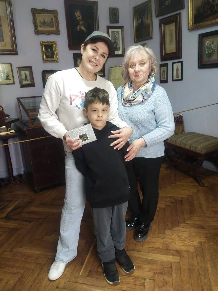 Сегодня выставочную экспозицию Н. С. Лескова посетила со своим сыном Юлия Охотникова — заслуженная артистка РМЭ г. Йошкар-Ола АРТД им. Константинова, исполнительница главной роли Катерины Измайловой в спектакле «Леди Макбет Мценского уезда» по одноименному произведению Н. С. Лескова.