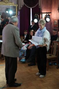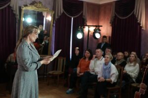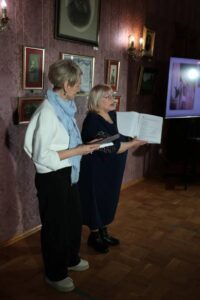 После театральной постановки сотрудники музея Тишина Ю.В. и Маричева Л.М. представили жизненный путь поэта. Их рассказ сопровождался презентацией материалов с выставки, чтением стихов Николая Поснова, а также выступлениями друзей, коллег, исследователей и поклонников его творчества. В этот день звучали песни на стихи поэта, талантливо исполненные артистом Брянского драматического театра Александром Романовым.