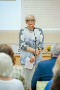 Вера Витальевна первое слово предоставила дочери поэта Екатерине Николаевне, которая не стала загружать присутствующих биографическими данными своего отца, а стала вспоминать яркие эпизоды из своего общения с ним в детстве. Если тебе страшно, говорил он дочери, то пой. И этому совету она следует по сей день. Школьникам было полезно услышать живые, жизненные воспоминания Екатерины Николаевны об отце, которые раскрывали поэта как тонкого детского психолога, хорошо чувствующего душу ребенка.