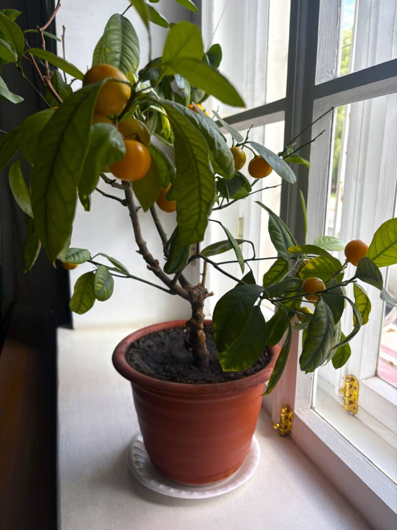 И в нашем музее растёт это необыкновенное растение, так сильно любимое русскими дворянами. Ароматом его белоснежных цветов мы наслаждались в начале лета, а сейчас наш померанец радует обильными плодами, наливающимися оранжевым цветом. И пусть осенью дни становятся всё короче, но наш лекторий продолжают освещать маленькие солнышки.