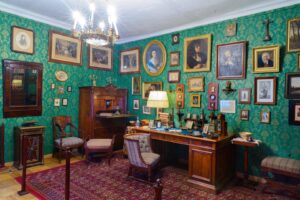 Посетители познакомятся с историей создания «Сказа о Левше», увидят первые издания произведения; издания с иллюстрациями знаменитых художников; вещи из петербургского кабинета Н. С. Лескова; редкие фотографии писателя; живописные работы – виды мест, связанные с жизнью Лескова (художники А. Л. Мазин и Ю. А. Подляский).